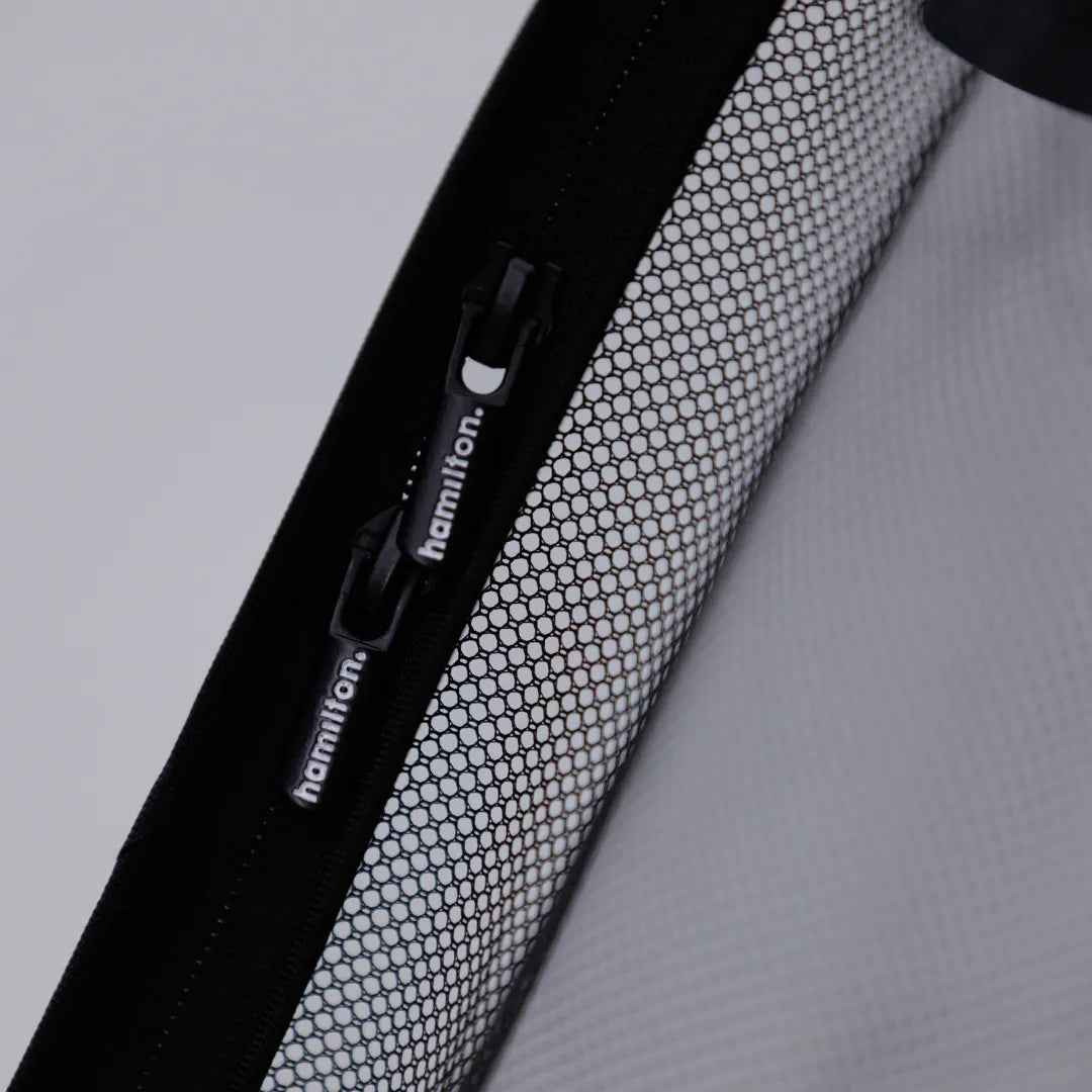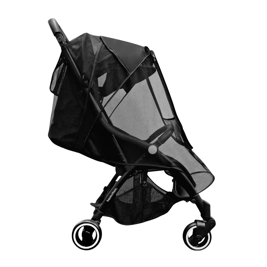 hamilton ユニバーサル モスキートネットは、 ベビーカー全体をすっぽり包み込みながら、通気性と視界のよさを両立させた虫よけカバーです。